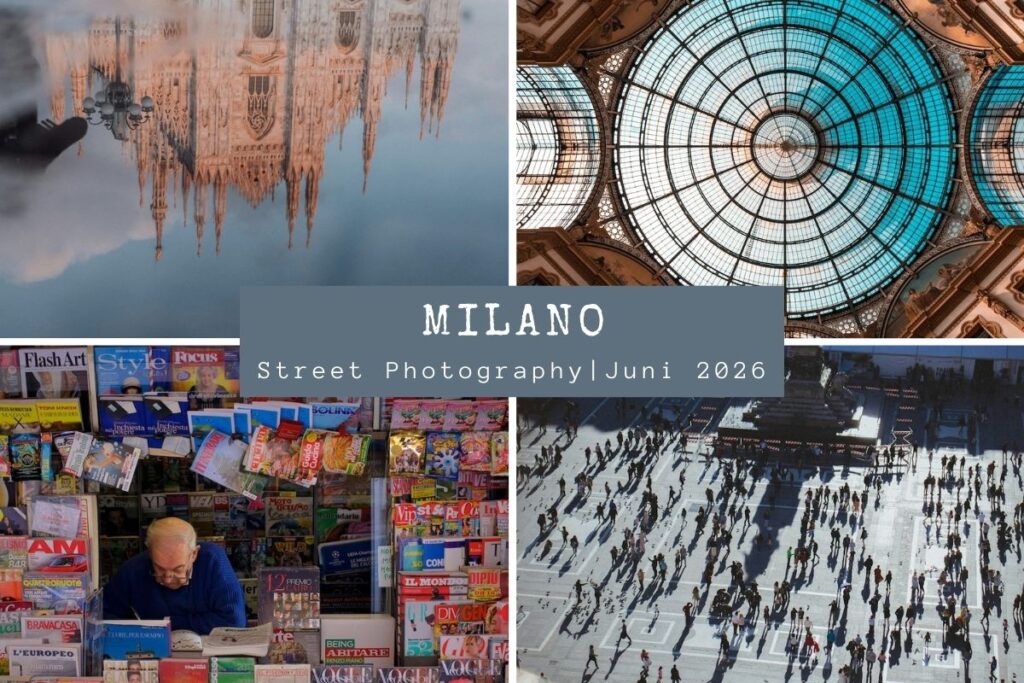 Street Photography bietet eine Bandbreite an fotografischen Themen, wie größere Überblicke von Straßenszenen, Details, Porträts, spontane Momentaufnahmen, geplante Positionierungen und vieles mehr.